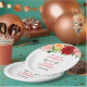 This beautiful and elegant wedding plate features watercolor red, pink and orange roses with foliage. The text combines handwritten script and serif fonts for a stylish and modern look. This is perfect for a summer rustic wedding.