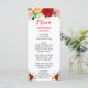 This beautiful and elegant wedding menu features watercolor red, pink and orange roses with foliage. The text combines handwritten script and serif fonts for a stylish and modern look. This is perfect for a summer rustic wedding.