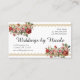 Lush bouquets of romantic red, pink, and white roses are in the top left and bottom right corners, with an ornate gold frame across the top and bottom of this business card for a wedding or events planner. Could be used for many other businesses such as florists, hospitality, and more.