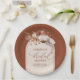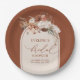 Add a touch of elegance to your celebration with these boho bridal shower paper plates, featuring watercolor terracotta florals, pampas grass, and a chic boho arch. The warm earthy tones of terracotta, copper, burnt orange, rust, dusty orange, and soft neutrals create a stylish and modern design that’s perfect for a trending boho chic bridal shower theme.