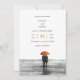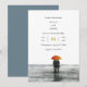 Capture the essence of love on a rainy day with our "Minimal Rainy Day on the Coastline" watercolor wedding invite. This elegant design features a minimalist scene where streaks of rain gently blur the horizon, blending the grey sea with the overcast sky. The subtle monochrome tones of the rainy environment are beautifully contrasted by a lovely couple walking under a colourful umbrella, bringing a vibrant splash of brightness to the scene. Perfect for couples who appreciate understated elegance and the beauty of nature, this invite offers a modern and romantic touch to your beach wedding. Fully customisable, it allows you to add your personal details and make it uniquely yours. With its clean lines and serene atmosphere, this invite sets the tone for an intimate and memorable coastal wedding celebration. Ideal for those who love the idea of a beach wedding with a touch of rainy day romance, this invite is a timeless addition to your special day.