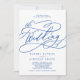 This romantic sapphire blue all in one wedding invitation is perfect for a simple wedding. The modern classic design features fancy swirls and whimsical flourishes with gorgeous elegant hand lettered typography.