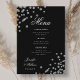 Matching products are available! This elegant wedding "Menu" card features a modern glitter confetti design, custom names, and date text. It is fully customisable and easy to use and personalise.