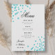 Matching products are available! This elegant wedding "Menu" card features a modern glitter confetti design, custom names, and date text. It is fully customisable and easy to use and personalise.