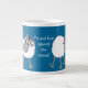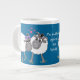 A fun Jumbo-sized Coffee Mug, with two comic sheep and hearts, from a hand-drawn illustration by Judy Adamson. You can change or delete the text and also change the blue background colour.