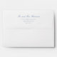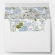 Elegant wedding envelope with a soft blue and white floral seamless pattern on the inside and classic calligraphy font.