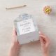 ALSO AVAILABLE WITH A QR CODE OR WITH OR WITHOUT DINNER SELECTION OPTIONS. This romantic and rustic invitation features a soft dusty blue background behind a watercolor floral frame of soft blue and white delphinium, hydrangea, and roses with soft greenery. Created by Simply Farmhouse Press.