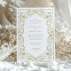 The reverse side presents an ornate full-pattern background with stylised florals and symmetrical scrolls. It’s a lush composition that evokes the charm of vintage wallpapers and illuminated manuscripts. Perfect for romantic weddings in spring or summer, or celebrations with an old-world botanical theme.