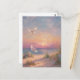 A stunning oil painting on canvas, capturing a serene sunset landscape with dreamy pastel hues and soft light. The sky is filled with delicate brushstrokes, creating a gentle atmosphere. Two graceful white doves glide through the sky, adding a touch of elegance. The sandy beach below is adorned with vibrant, colourful flowers, enhancing the light and airy ambiance. The artist's skilful brushwork lends depth and movement to this enchanting scene, offering a sense of tranquillity that serves as a welcome retreat from the daily hustle. The captivating poster embodies the essence of the painting, bringing serenity and relaxation to any surrounding., poster, illustration, painting, painting, poster, illustration