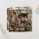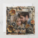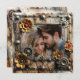 Cool and unique wedding wedding invitation. Steampunk themed with gold and silver metal gears, flowers and a weathered wood background. Upload your favourite picture in the personalise area and edit the text on the back to add your own wedding info.
