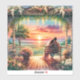 This dreamy illustration captures a serene and romantic moment as a couple sits together on a wooden bench beneath a flower-draped pergola, watching the sun melt into a radiant coastal horizon. The scene is bathed in warm sunset hues—corals, golds, and soft purples—that reflect a tranquil, folk-inspired countryside charm. Lush blooms in shades of blush, peach, and cream surround the porch, adding to the cottagecore atmosphere. Delicate architectural details, gentle lighting, and the embracing silhouettes create an aesthetic that’s both nostalgic and heartwarming. Ideal for evoking peaceful, sentimental moods, this artwork blends romantic realism with a touch of soft whimsy. AI generated artwork.