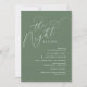 Set the tone for an unforgettable evening with our 'The Night Before' invitation card. Embrace modern elegance as you invite loved ones to join you for a memorable pre-wedding romance celebration. With sleek design and script, in forest sage green scheme, this invitation promises an evening of anticipation and joy.