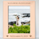 Romantic Two Hearts Newlywed Wedding Photo Laser Etched Wood Frames,. Bride and Groom's Names at top of frame with wedding date at the bottom with two hearts at each bottom corner. Perfect for newlyweds 1st Christmas or for A 5th Wedding Anniversary Gift, according to tradition wood symbolises the depth and strength that comes after 5 years down and forever to go!
