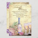 All In One romantic vineyard winery wedding invitation with wine bottle, glasses and grapes on a vintage style background. Add all of your wedding details to the back of this invitation. -