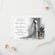Announce your special day with timeless elegance. This romantic Save the Date card features a hand-drawn sketch of a bridal gown on a mannequin, a soft bouquet resting on a vintage table, and a delicate blush perfume bottle – the only hint of colour on this chic black and white design.