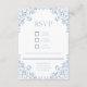 This Romantic Vintage Dusty Blue and White RSVP Card is perfect for a vintage elegant . It's perfect for a destination wedding with a vintage bridgerton inspired or french country theme. The romantic wedding theme is simple yet elegant with a minimal vintage design that works great for a vintage coastal chic ceremony or old money aesthetic in formal settings. Designed by Simple Desert Design Studios. Message us for customisation with your specific hue or colour code.