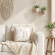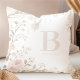 Exquisite Sophisticated Romantic Pastel Watercolor Floral Throw Pillow Design with Filigree, Vines, Wildflowers, and Elegant Space for Initial and Name.