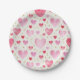 Romantic Watercolor Hearts & Gold Glitter Confetti Paper Plate