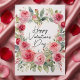 Express your deepest affection this February 14th with this enchanting Watercolor Pink Rose Heart Valentine’s Day card. This design features a lush botanical illustration of red and pink roses entwined with sage greenery to form a romantic heart shape. The front displays "Happy Valentine's Day" in an elegant, flowing script.