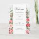 Lovely columns of elegant watercolor blush pink roses and green foliage on a subtle pastel watercolor background and centre label with gold borders. Features calligraphy text graphics in custom script font (or delete and customise in the design editor) with editable text fields for your ceremony details and wedding participants. Inside also features an optional photo template.