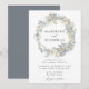 Set the tone for your special day by inviting quests with our Romantic Watercolor White & Blue Floral Wreath wedding invitations. The elegant floral wedding invitations feature your names encircled by a wreath watercolor white & blue flowers, green and slate grey/light blue foliage. Personalise the invites by adding your wedding details below. The beautiful wedding invitations reverse to a solid slate grey background.