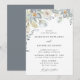 Set the tone for your special day by inviting quests with our Romantic Watercolor White & Blue Floral wedding invitations. The elegant floral wedding invitations display your wedding details below a top border of watercolor white & blue flowers, green and slate grey/light blue foliage. The beautiful wedding invitations reverse to a solid slate grey background.