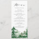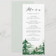 Woodland theme menu card featuring green watercolour trees and mountains. This whimsical menu card is perfect for spring, fall and winter events. This will also be perfect for forest and woodland theme events. Matching items are available.