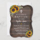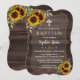 Rustic, Romantic card design featuring watercolour sunflowers bouquets, a semi-transparent shape with a textured frame, arrows with hearts and sunflowers as divider, all on an old barn background. Use Customize tool to add your info. Matching items can be found in my Baptism/Christening Celebration Collection.
