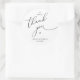 Modern Wedding minimalist Thank You Cookies Gifts Classic favors Round Sticker, in romantic script, little heart, with bride and groom signature and wedding date, black and white theme.