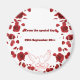 Celebrate your special day with this elegant round fridge magnet featuring a romantic design of red roses and doves. Perfect as a wedding favour or keepsake, it showcases the message "From the special day" and a customisable wedding date. A lovely reminder of a moment filled with love and commitment