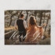 Thank your friends and family for attending your wedding in style with our elegant thank you postcard. The postcard displays your favourite horizontal wedding photo with "Thank You" in a white, modern calligraphy script. Personalise the wedding thank you postcard by adding your names on the front. The postcard reverses to display your return address and custom thank you message.