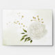 Beautiful white flower with some green leaves and gold floral wedding envelope