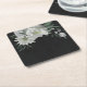 romantic white flowers and green leaves black square paper coaster