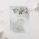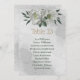 Unique table number seating chart card featuring romantic white flowers and green leaves.