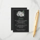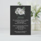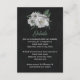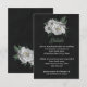 Unique wedding enclosure card featuring romantic white flowers and green leaves on black background.