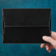 Unique wedding envelopes featuring romantic white flowers and green leaves on black background.
