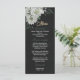 romantic white flowers greenery black wedding menu