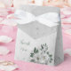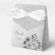 Unique wedding favour box featuring romantic white flowers and green leaves.