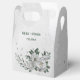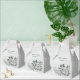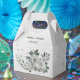 Unique wedding favour box featuring romantic white flowers and green leaves.