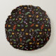 Romantic Wildflowers and Butterflies black Round Cushion