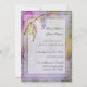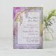 Soft, romantic feel with pastel colours of light purple, blue, creams, pinks and peach and one arching branch with wisteria flowers. Old fashioned look yet stylish for today's bride. Hints of watercolor and handwriting in the background. Showcase your invitations in style!