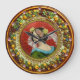 Elegant vintage enamel ,romantic lady portrait with flower and fruit crown ,shiny 3D red ruby gemstones.