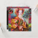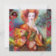 Original contemporary watercolor painting with golden foil and iridescent colours in bright green,yellow orange , teal,turquase, white .Elegant ,beautiful sophisticated brunette woman,red,green sparkling gold fabrics of a baroque costume with peacock feathers .Painting by Bulgan Lumini (c).This cool and artistic card is perfect for weddings,bridal showers,sweet 16,quinceanera birthday parties,costumed dance balls,,romantic engagements,save the date announcements,cocktails,celebrations,anniversaries,gatherings,