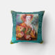 ROMANTIC WOMAN WITH SPARKLING PEACOCK FEATHER Teal Cushion