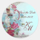 ROMANTICA MONOGRAM,Save the Date,blue Classic Round Sticker