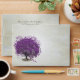 Whimsical Magical Tree of Love Purple Heart Leaf Tree on Tea Stained Warm Silver Toned Paper with an cute little swirly designs to enhance the roots of love on this unique woodland wedding invitation...