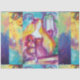 Balcony scene from Romeo and Juilet tragedy by William Shakespeare .Original contemporary watercolor painting with golden foil and iridescent colours in bright purple ,pink,green,yellow orange , teal,turquase, white ..Painting by Bulgan Lumini (c)