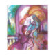 Balcony scene from Romeo and Juilet tragedy by William Shakespeare .Original contemporary watercolor painting with golden foil and iridescent colours in bright purple ,pink,green,yellow orange , teal,turquase, white ..Painting by Bulgan Lumini (c)