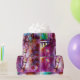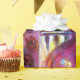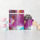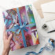 Balcony scene from Romeo and Juilet tragedy by William Shakespeare .Original contemporary watercolor painting with golden foil and iridescent colours in bright purple ,pink,green,yellow orange , teal,turquase, white ..Painting by Bulgan Lumini (c)