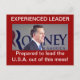 I took this photo on 1/3/2012 in Des Moines, Iowa. This is my own slogan. Experienced Leader Prepared to lead the U.S.A. out of this mess!
